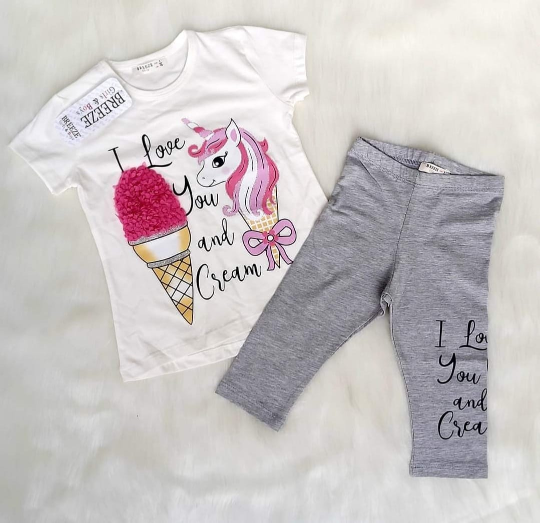 Compleu fete format din 2 piese, tricou si colanti trei sferturi.