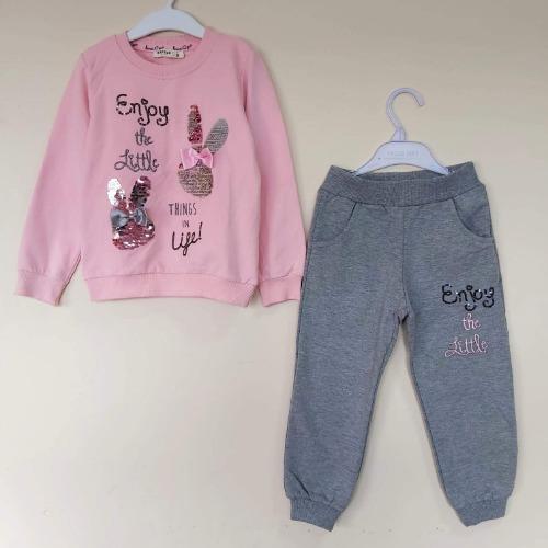 Compleu fete, format din bluza si pantaloni lungi, realizat din 100% bumbac, moale, fin la atingere.