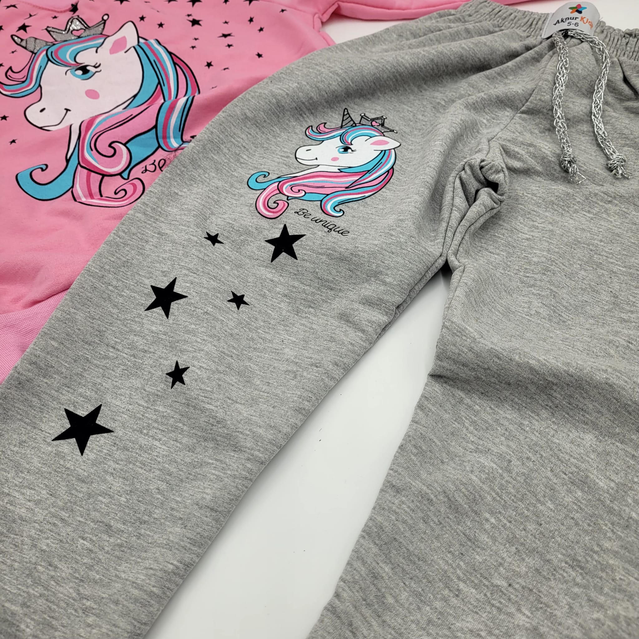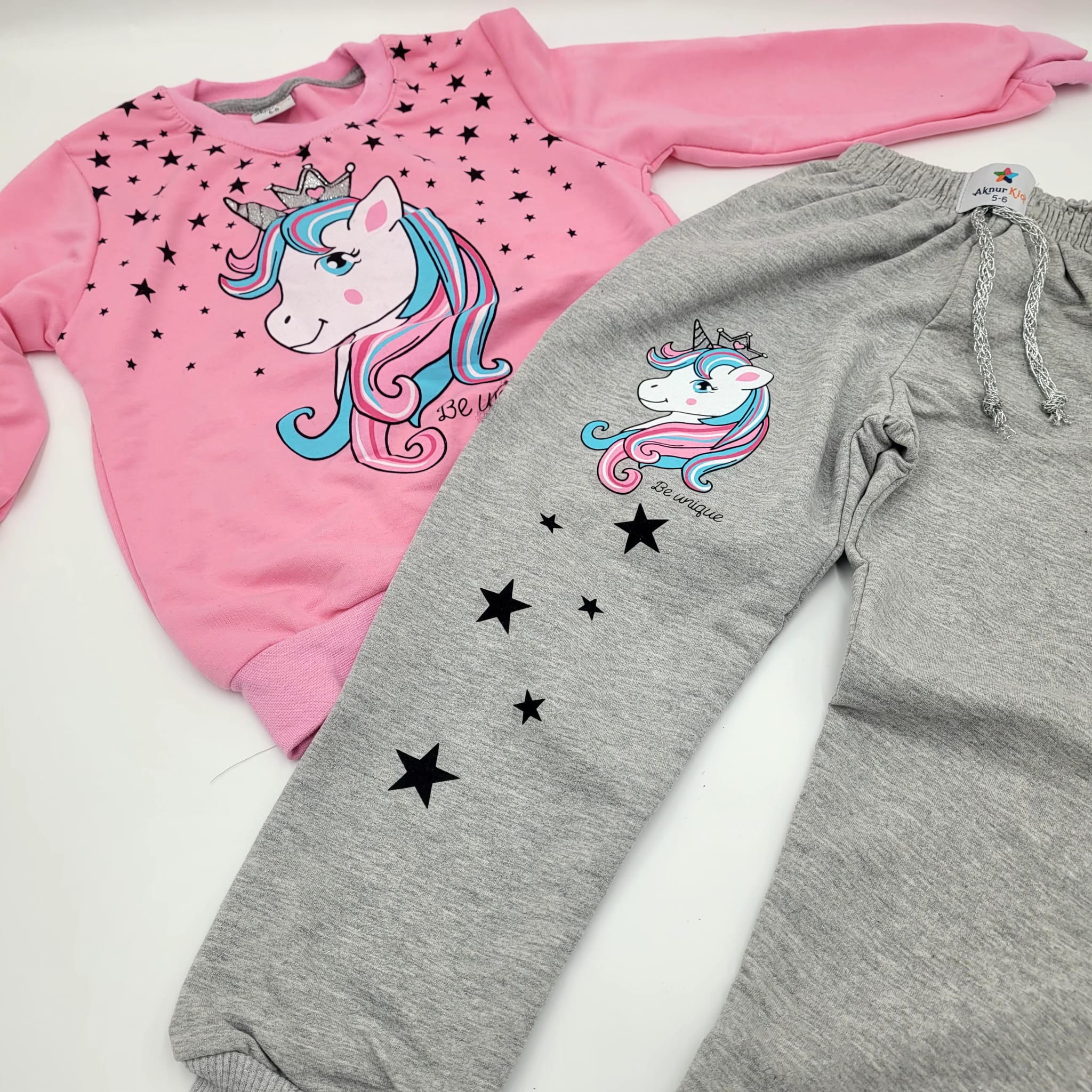 Compleu Unicorn pentru fetite, contine 2 piese: pantalon, bluza si hanorac