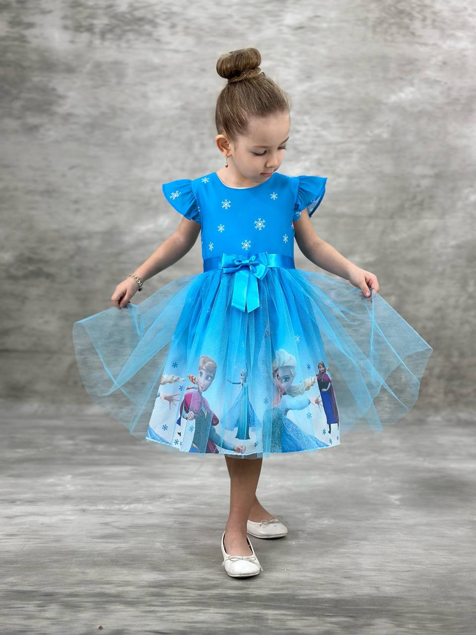 Rochie Frozen cu tull, funda la mijloc, albastru