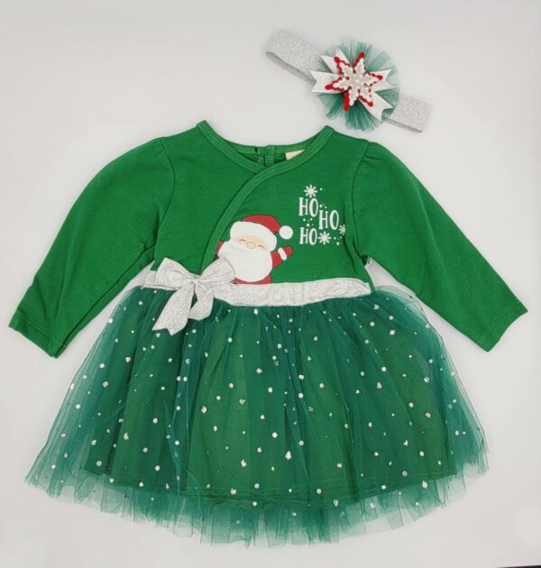 Rochie deosebita de Craciun pentru fetite 7 luni-2 ani. Rochita cu maneca lunga din bumbac in partea de sus, usor vatuita, combinata cu 2 randuri de tull si jupa in partea de jos. Guler rotund si lejer, ce permite imbracarea usoara. Bentita inclusa Material: 98% bumbac + 2 % elastan
