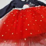 Rochie deosebita de Craciun pentru fetite 7 luni-2 ani. Rochita cu maneca lunga din bumbac in partea de sus, usor vatuita, combinata cu 2 randuri de tull si jupa in partea de jos. Guler rotund si lejer, ce permite imbracarea usoara. Bentita inclusa Material: 98% bumbac + 2 % elastan