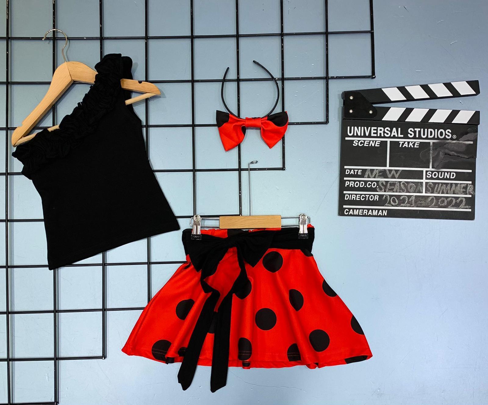 Set 3 piese pentru fetite format din bluza, fustita si bentita.